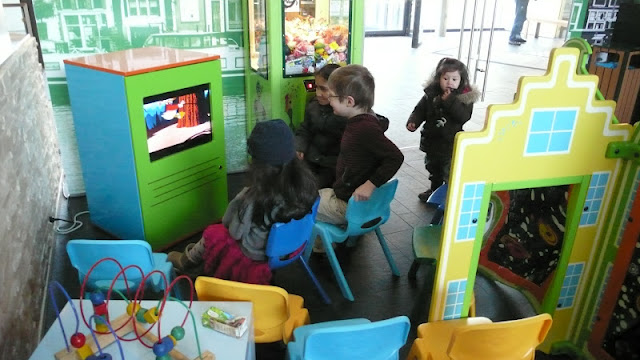 原來,這個cafe一進門有個"kids' corner"(兒童區),有桌椅玩具還有一個電視播放卡通,這不是貼心父母的好設計是甚麼?(笑~)